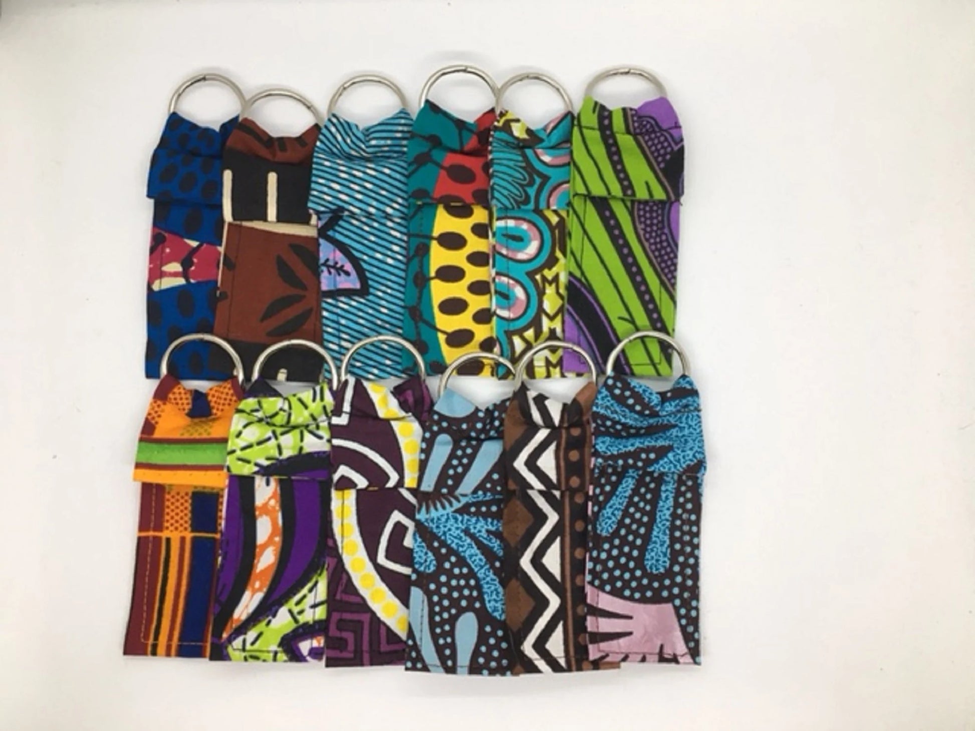 Never lose your lip balm again with this handy lip balm holder. Made with vibrant African fabric, this lip balm holder will be your new favorite item. Attach it to your purse, car keys, back pack or wherever is most convenient for you.